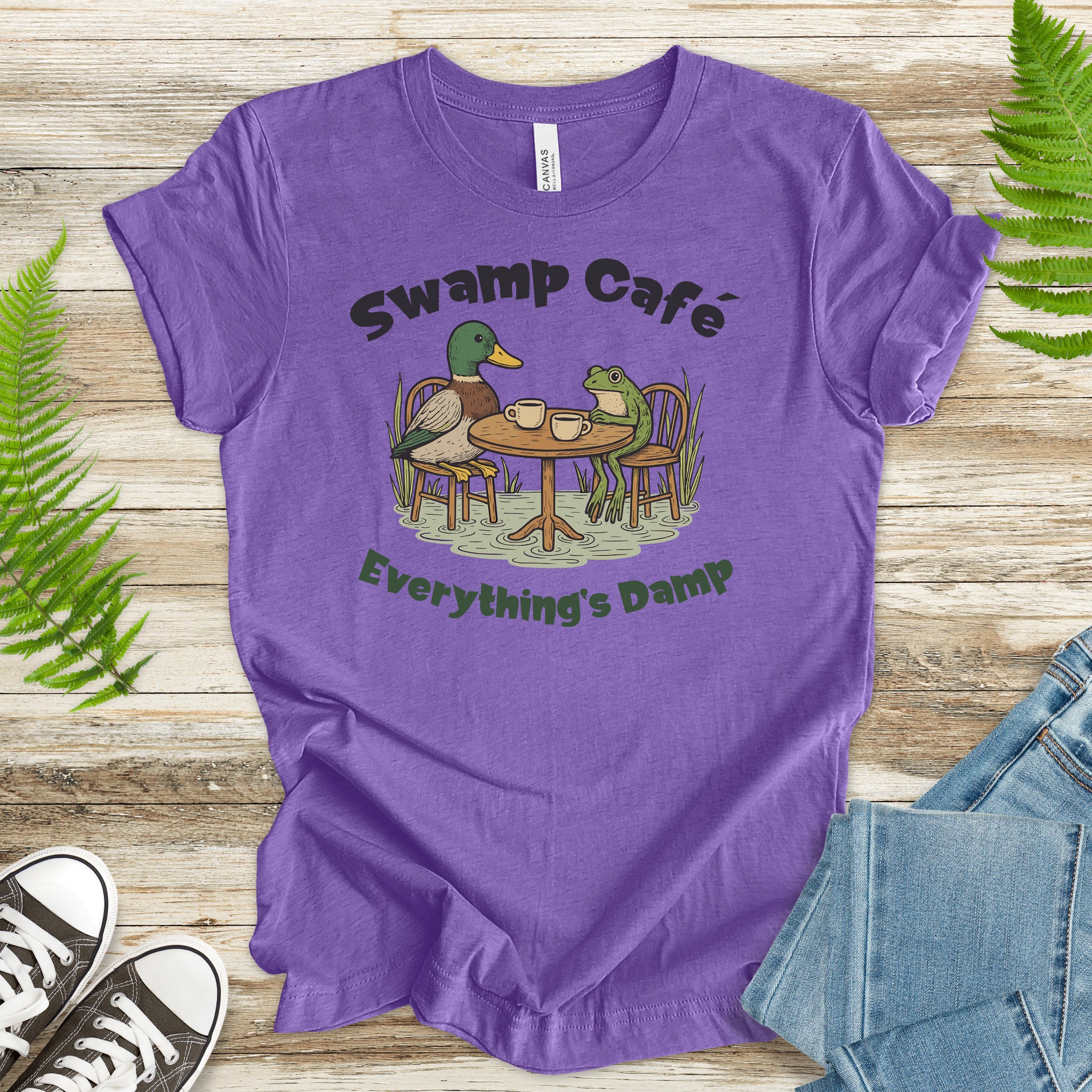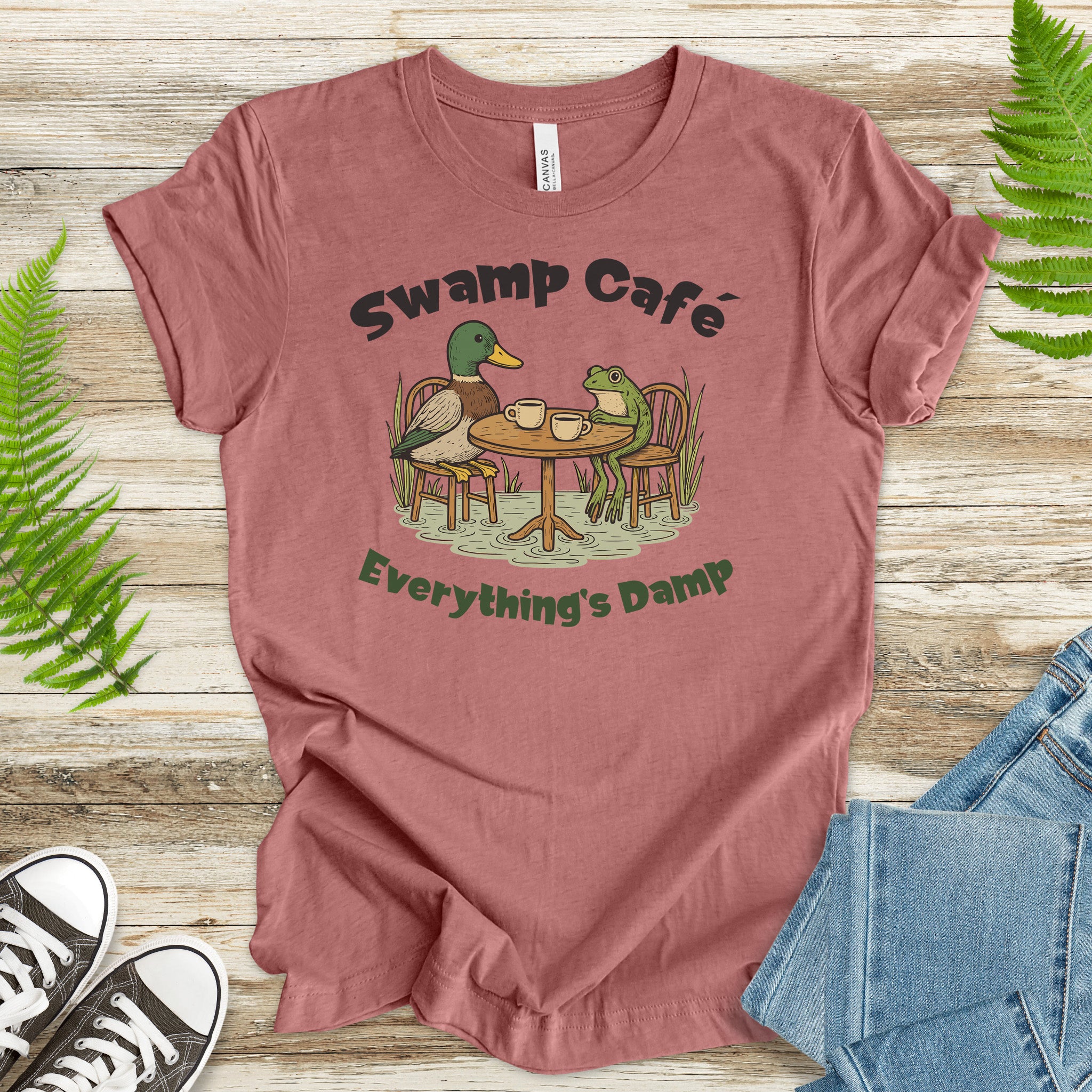Swamp Café Funny Frog & Duck Coffee T-Shirt – Retro Nature Meme Gift